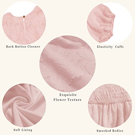 Description: Women’s Elegant Floral Long Sleeve Round Neck Smocked A-Line Flowy Tiered Maxi Dress with Pockets. Features: Crew neck, A-Line, Floral textured, Puff sleeves, Lantern sleeve, long length, Ruffle hem, High waist, Light mesh, Frill, two side pockets, four colors to choose from. Tiered Long Dress – Three-layer is beautifully ruffled, it has a flowy dress with ruffle detailing at the hems. The bodice and dress are lined. We’re totally feeling a fine romance in the making when you walked up wearing this sweet style lace maxi dress! Shirred Dress – Features a shirred bodice with a round neckline, slightly sheer long sleeves with elasticated cuffs. The dress goes great with any body shape and looks just a great fit on you whenever you decide to wear it. Back Button Closed – This woman’s A-Line puff sleeves dress uses a simple and special button-closed design. With a button at the back not easy to drop. The elegance and sexy highlight the features of the back, creating the most stunning silhouette. For Any Occasion – Dresses for Women Perfect for Any Occasions, Such as Party, Club, Cocktail, Shopping, Wedding, Work, Vacation, Beach, Daily Wear, Wedding Guest, Dating, or Semi-formal Wears.