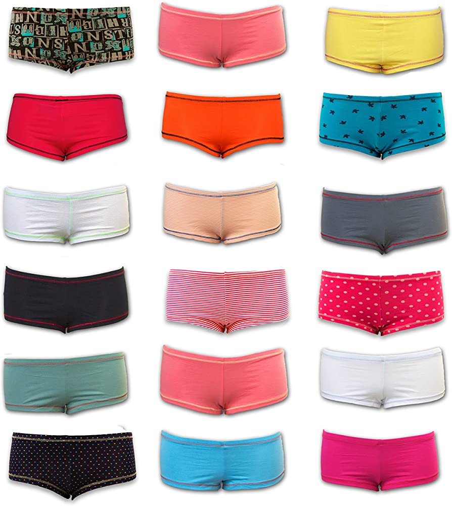 • Style: Ladies Multi-color cotton spandex boy-short briefs.
