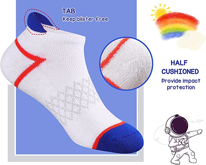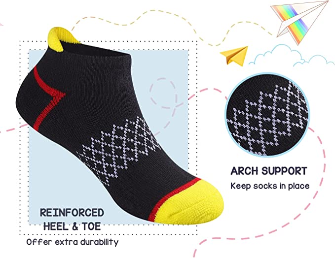 Twelve Pairs Boys Socks Ankle Athletic Socks With Cushioned Sole For 4-6 6-8 8-10 Years Old Kids