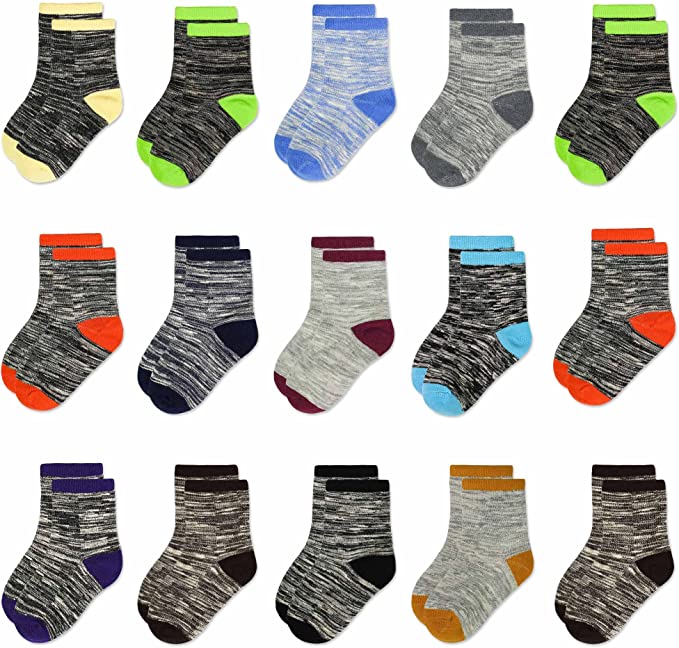 Description: Featuring mid-cut socks: these boy cotton crew socks with mid cut design, will not slide down easily, keep the children’s feet warm and cosy, fashion colors that cater to all styled clothes, they belong to the real boys’ daily wear socks. They are made with comfortable materials: 85% Cotton and 15% Polyester, high quality materials make socks soft, breathable, stretchable and durable, wick sweat away from skin to keep skin cool, dry and light, and also avoid odors. Further, you find comfortable and fashionable design within these socks as they are roomy elastic cuff and Y heel design, prevent shifting and falling off. They are also built with reinforced heels and toes in high impact areas for extra durability and protection. They also come with various colours and sizes to choose10 colors will certainly make it easy for you to match them with all kinds of good-looking clothes. Suitable for all seasons: medium thickness kid’s socks with grips are not too thick, not too thin, easy to match the shoes, suit for all seasons to wear.