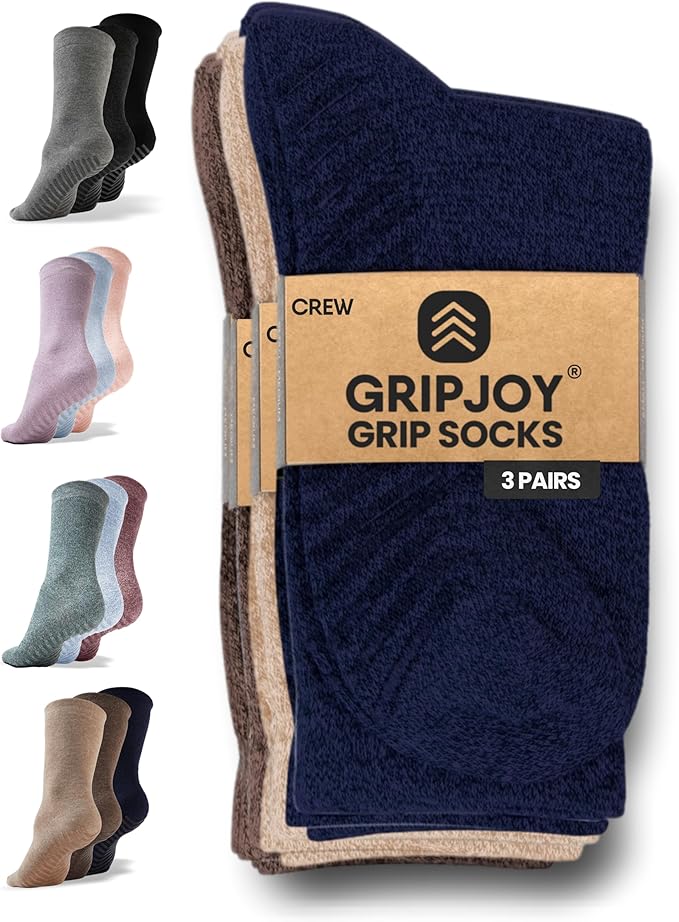• Description: These socks were designed to increase balance and stability. From caring for elderly parents, to practicing your yoga or pilates pose, our versatile gripper socks for women and men keep your feet planted to slippery hardwood or tile floors. Socks feature superior grips stay in through wash. Toss them in the wash! Our patented “Chevron Pattern” grip socks for women stay on wash after wash and won’t fall off like dotted patterns. These sock are socks that give back! We’re on a mission to end needless falls through non slip socks. Read about Alison’s journey and learn how we give 10% back to help fund important research. The socks were designed in Chicago.