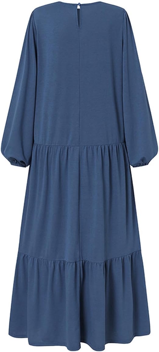 Crew Neck, Long Sleeve, Blue-Gray Modest Abaya Dress