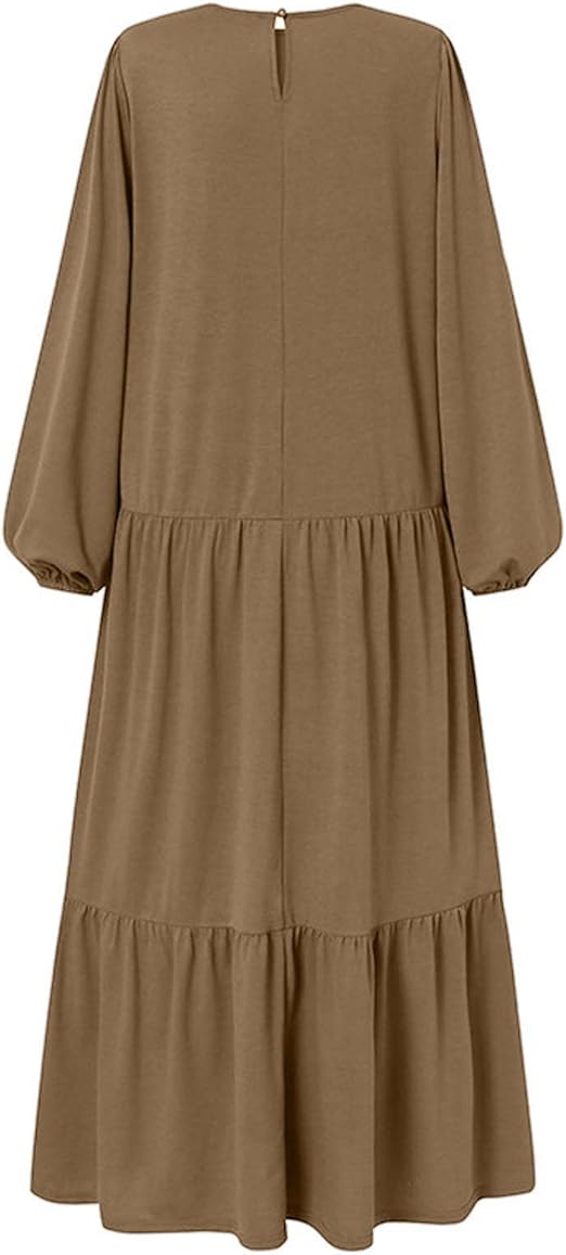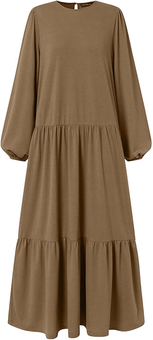 Crew Neck, Long Sleeve, Brown Modest Abaya Dress