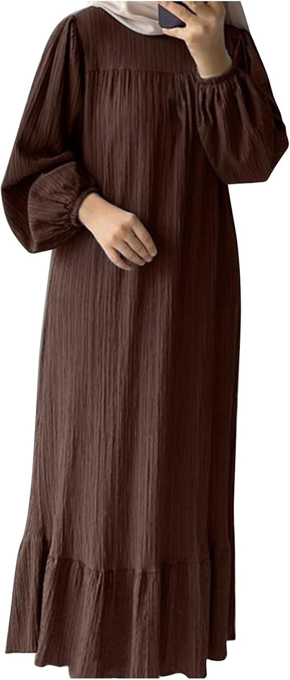 Description: This an Abaya for Muslim Women Muslim. Stylish cotton blend abaya is breathable hemp, pure natural fiber structure, very soft and comfortable and can be worn alone in summer to keep cool, It is also wear warm clothes inside in spring, autumn, and winter, with high elasticity, large size, enough to maintain the appearance. The Abaya is long sleeve robe long maxi dress for Muslim women, gives you an extremely stylish and elegant look in the daily life. A long sleeve with elastic cuffs can stay in place, won’t roll up and slide down easily when stretching. Classic round neck ensure a flexible movement of the neck. High waist can elongate your figure and make you taller visually. Muslim robe long sleeve high rise long maxi dress, enhances your overall beauty and elegance. Solid color is always a good option for an elegant look, simple and versatile, will never be out of date. Easy to go well with your favourite hijab to complete the full appearance, Modest full length can offer a full coverage to your body, loose fit for a free movement without any restriction. Suitable for different occasions. The modest robe long maxi dress is not only for Muslim women, but also for those who would like to escape from the sunlight.