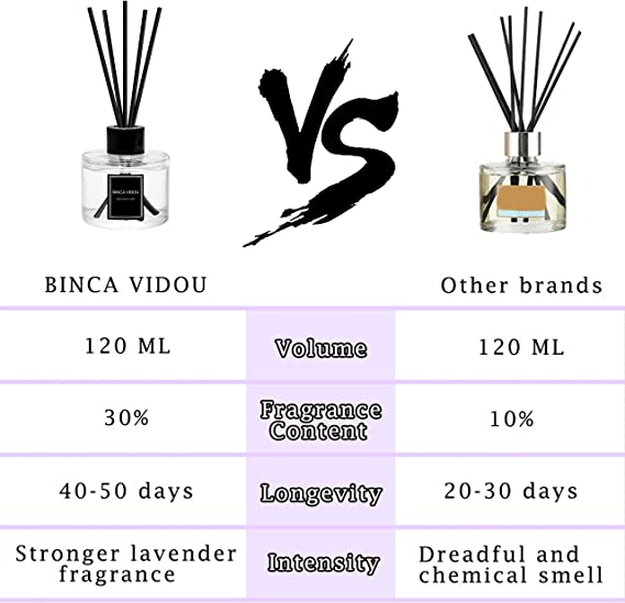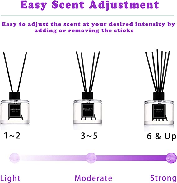 Care: Easy to use, insert the reed sticks inside the diffuser bottle. The lavender fragrance oil is gently volatilised by the flipping of the natural rattan reeds, giving your home or any other space a long-lasting, continuous scent into the air for at least 90-120 days or 3-6 months.