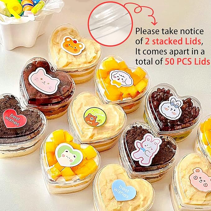 • Description: These dessert cups with lids and spoon come in a set of Fifty. Dessert Cups are designed in 5 oz plastic dessert bowls that adopt a heart shape design, modern, adorable and eye-catching, will make the dessert look more lovely and appealing, and bring a more sweet atmosphere to your friends. It showcases your favorite hors d’oeuvres, mousses and layered desserts. They are recyclable, stackable, reusable for home use but not for take away desserts. Each package contains 50 mini dessert cups with 50 spoons and 50 lids, support you handle any entertainment easily.