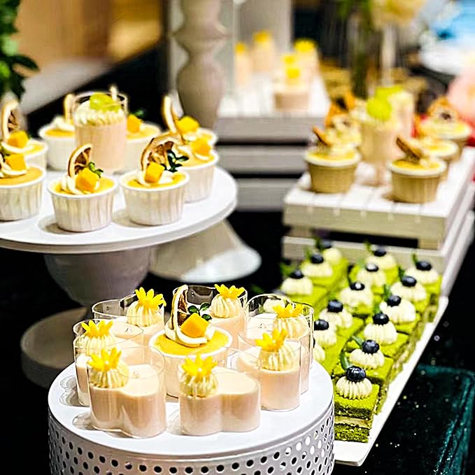 • Usage:  Designed for Multi Purpose usage and for any Occasion. Grate for any occasion – Add that sophisticated gourmet effect at Eid Dining, Ramadan Iftars, BBQ’s, nikkahs,  weddings, corp catering parties, tastings, pool parties, dinners, engagement parties, pastry shops and restaurants. Suggestions on what to serve them with: These mini dessert cups with spoons are perfect for small servings of parfaits, mousses, puddings, smoothies, frozen yogurts, sorbets, sherbets, side sauces, fruit cocktails, liqueurs, portioned beverages as party supplies for any party occasion.