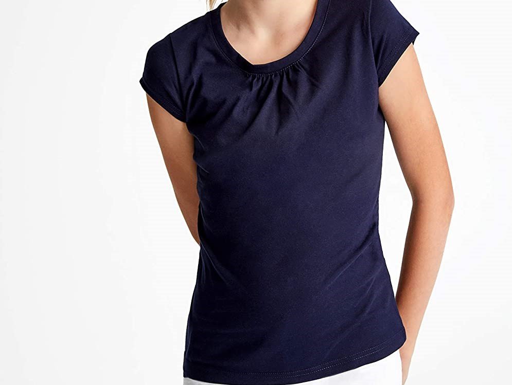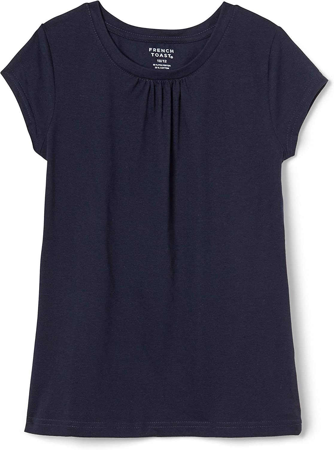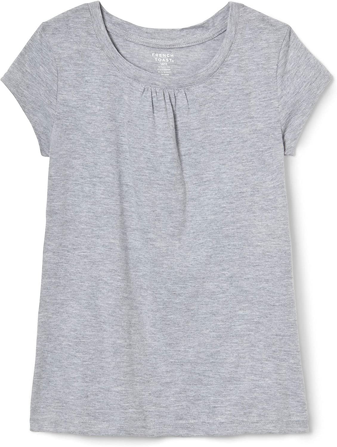 • Description: Girls short-sleeve crewneck T-shirt comes in many colours. Features gathered fabric at the neck for a feminine flair. These crewneck tees are great for laying.