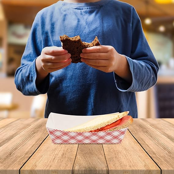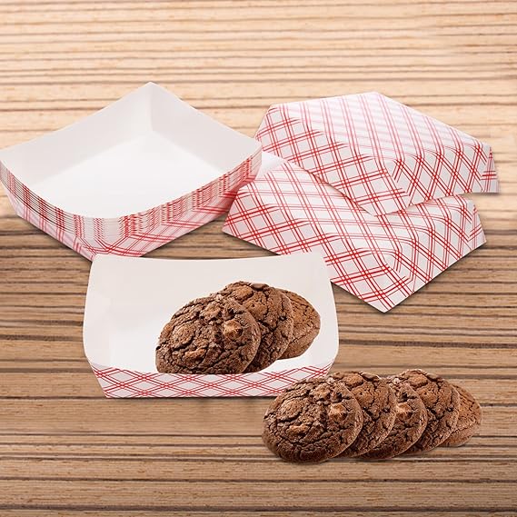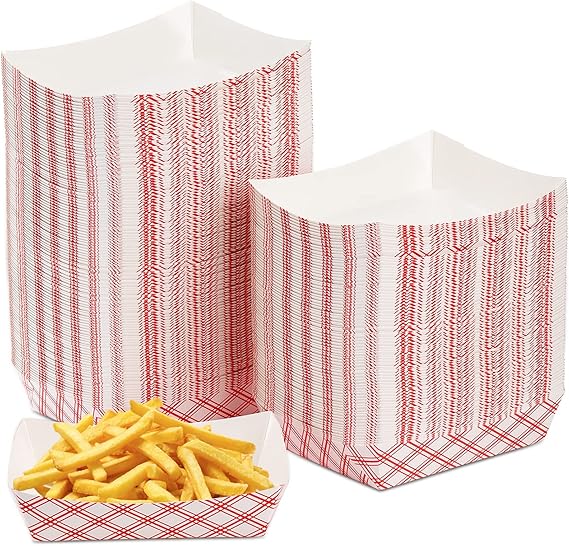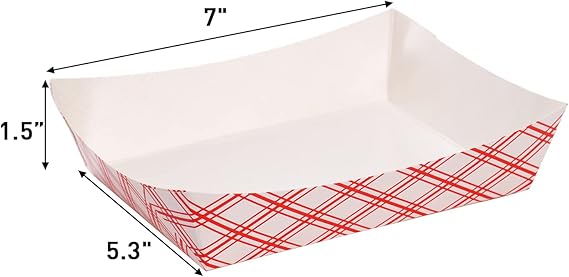 Description: These are Sturdy Trays for Mess-Free Eating. Feel free to pile on huge servings of tasty foods without fear of collapse! Our paperboard food trays are built seam-free and hold up to 1 lb of food with ease. These food trays are Grease Proof Coating which means there is No Leaking! Save your guests or customers from grease stains with our sturdy, leak-proof food trays. Serve fried or saucy foods with confidence! Trays come with Lifetime money back guarantee! We stand behind our concession stand and trays all of our products. If you’re not 100% COMPLETELY SATISFIED, just send us an email, and we promise to make it right! Save Money and Save Money and Space with Bulk Packs. Don’t waste storage space or money buying more trays than you really need! Our 100 pack is perfect for backyard parties, church socials, or school carnivals. Ideal For Fundraiser Food. Need a food boat for banana splits? Done. Need a basket for hot dogs? Done. Our restaurant-grade trays are perfect for any hot or cold festival foods you want to serve.