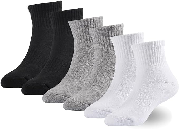 High-Quality Black, Gray & White Athletic Crew Socks (Set of 6)