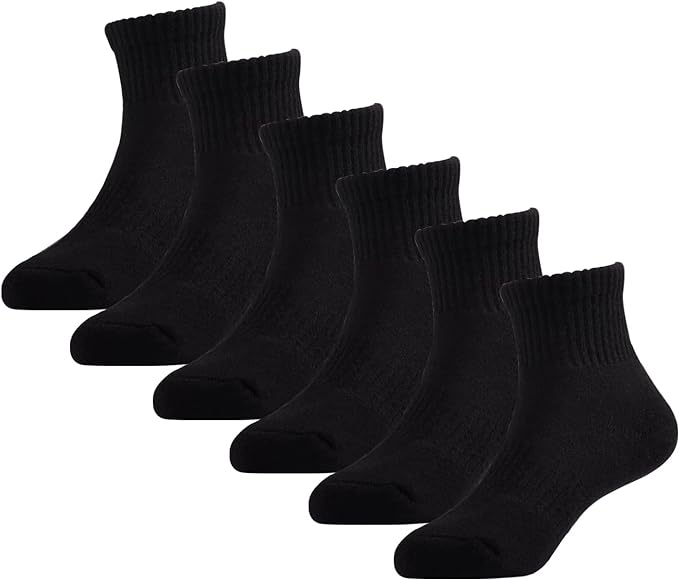 • Description: High-quality kids crew socks that are made with combed cotton.  The thick and soft material protects kid’s feet well.  Kids crew socks are very breathable, kids won’t feel uncomfortable due to sweating, they can enjoy the joy of exercise all the time. These crew socks feature ribbed cuffs and full cushion sole.  Ribbed cuffs help keep your little one’s socks in place. Another feature is Y-heel and Full cushion soft towel fabrics that suit ultimate support in any work boot or shoe. An Arch band provides a supportive feel. Reinforced heel and toe for durability. Designed for occasional wear, whether walking, running or playing, these socks make it easier and more comfortable for kids to move around. The simple and classic design also makes it match well with different styles of clothes and shoes.