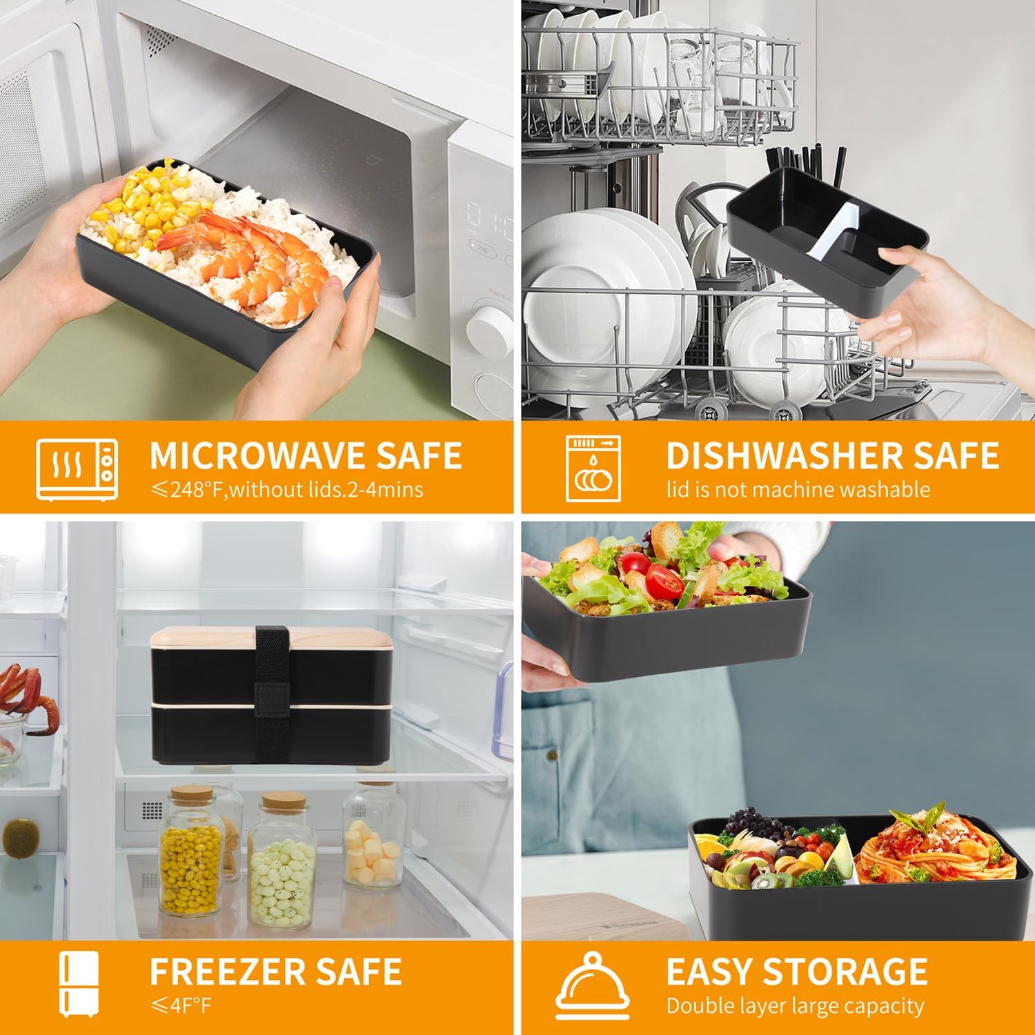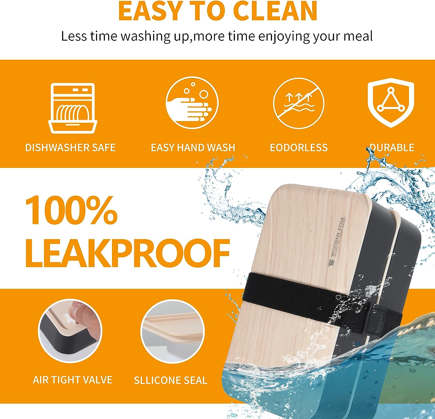• Style Leak-resistant Bento Box Lunch Container with 2 stackable wooden and plastic layers
