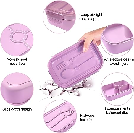 Description: This plastic bento box has four compartments that are ideal for kids’ lunches. You can have your main meals and side dishes as well as dips and sauces.