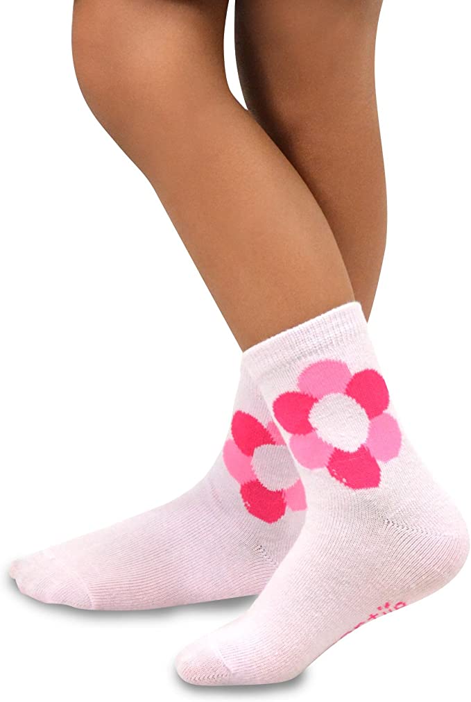 Little Girls and Toddlers Fun Cute Flower Novelty Crew Socks (6 Pack)