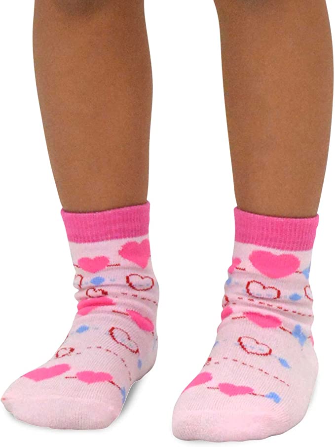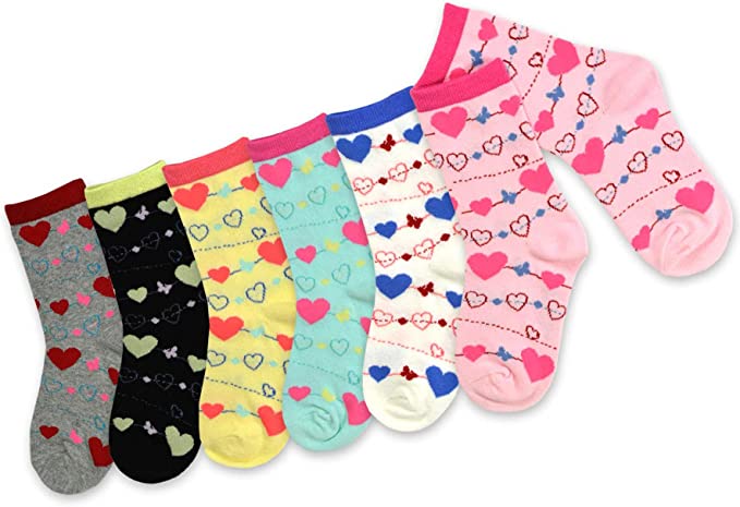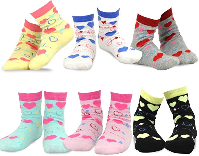 Little Girls and Toddlers Fun Cute Heart Novelty Crew Socks (6 Pair Pack)