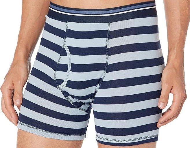 • Description: Contrast stripes at the elastic waistband bring a subtle highlight to these classic cotton boxer briefs with vertical flap fly. Elasticized waistband, tag-free for comfort