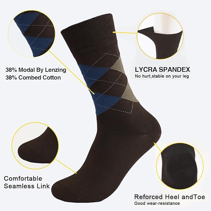 Moisture Wicking Men's Normal Thickness Office Dress Brown Crew Sock