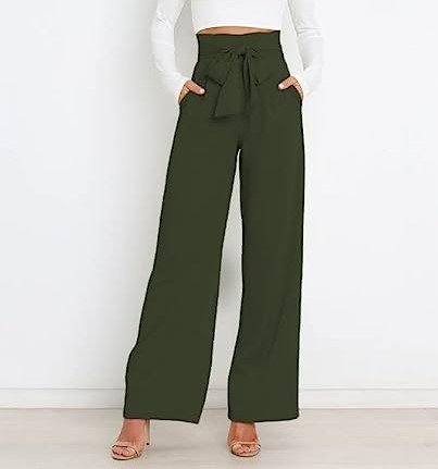 • Description: Women’s wide-leg dressy pants made of 100% polyester. Fabric is Lightweight and wrinkle-free, feel good to wear in spring and summer. Pants feature high waist wide leg casual pants, paper bag waistband with tie belt and front bow-knot, casual solid flowy work trousers for women, two side pockets, loose-fitting long palazzo pants, Fashion Design: Women’s casual loose palazzo pants featured with straight leg, the back elastic waistband is stretchy and front cute belt can be tied to fit your body type, high waist swing long trousers with front pleated design make it simple but chic enough. Versatile to Match: Women’s trousers high waisted gives a new meaning to office-wear, casual wide leg pants with pockets is easy to match with your tank tops, chiffon blouse,crop shirts for a perfect attire, also can be eye-catching with booties, high heels and a suit jacket