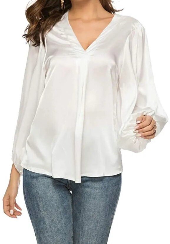 Style: Women Casual Lantern Sleeve V Neck Blouses Shirts Tops Pullover Plus Size