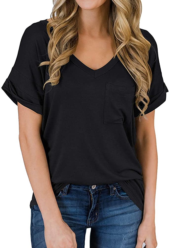 V-Neck featuring Casual T-shirt, stretchy, short sleeve, loose fit, comfy, solid colours and lightweight.