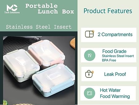 Style: Tech Stainless Steel Lunch Box Container with 2 Compartments
