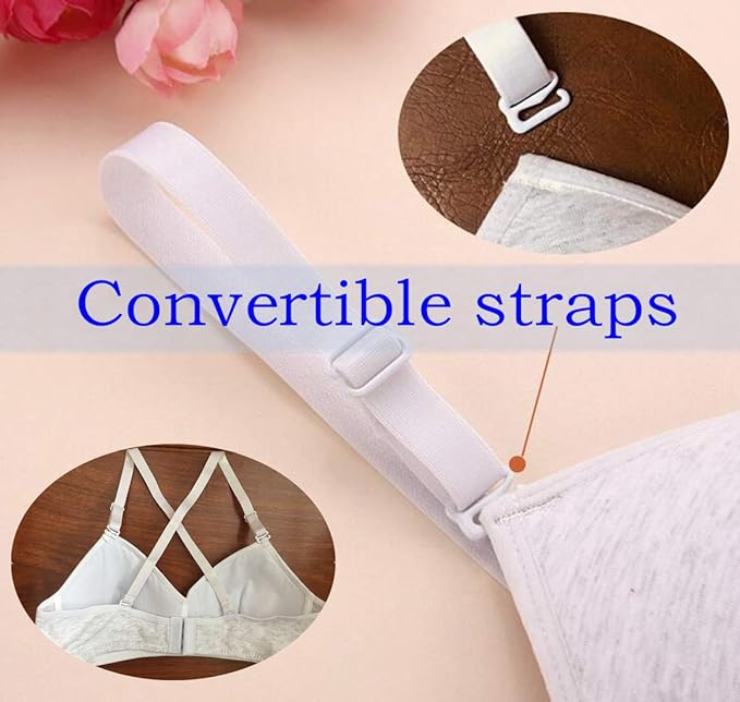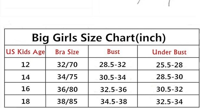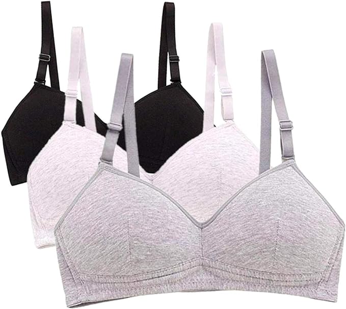 Description: These training Bras are made from breathable fabric. Lightly padded training bra with smooth 85% nylon 15% spandex outside and breathable 100% cotton inside, it can prevent the nipples from becoming visible. Bra come Wire Free. Soft Wireless solid bra has good support, like sports bra, great for teens ladies in sports activites and everday use. this set of Bras feature 3 Hooks Back Closure. Comfortable full cup bra is clasped back with 3 hooks and eye closure is adjustable to three sizes. Bras showcase Adjustable Straps. Adjustable shoulder straps to easily adjust the size you need.