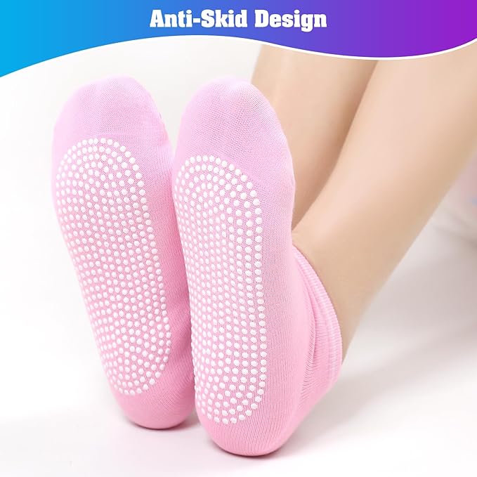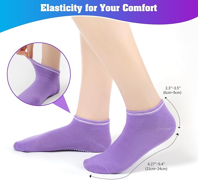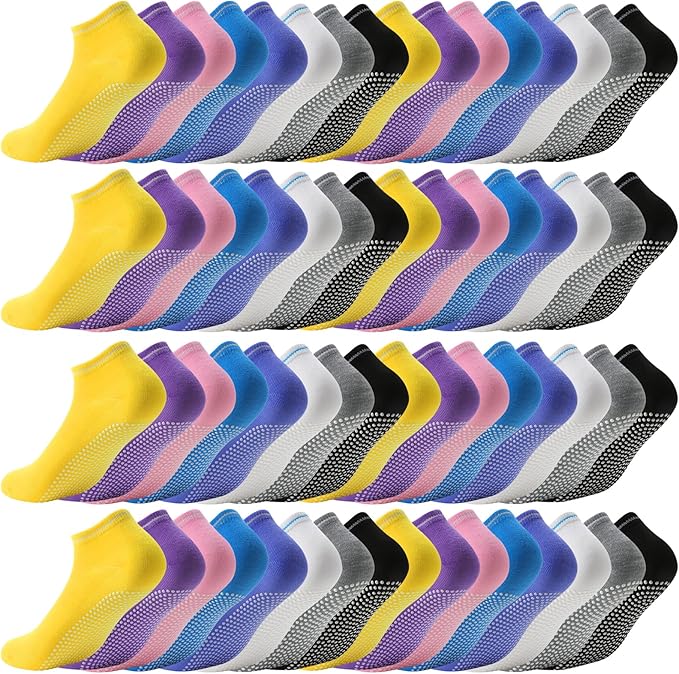 Description: This athletic Grip Socks Value Pack contains 40 pairs of grip yoga socks with 8 bright colors, 5 pairs in each color, enough quantity to meet your daily use, replacement and sharing needs. Socks were designed from silicone grips on the bottom, it provides safety and security at anytime.the design is added for protection when you exercise.