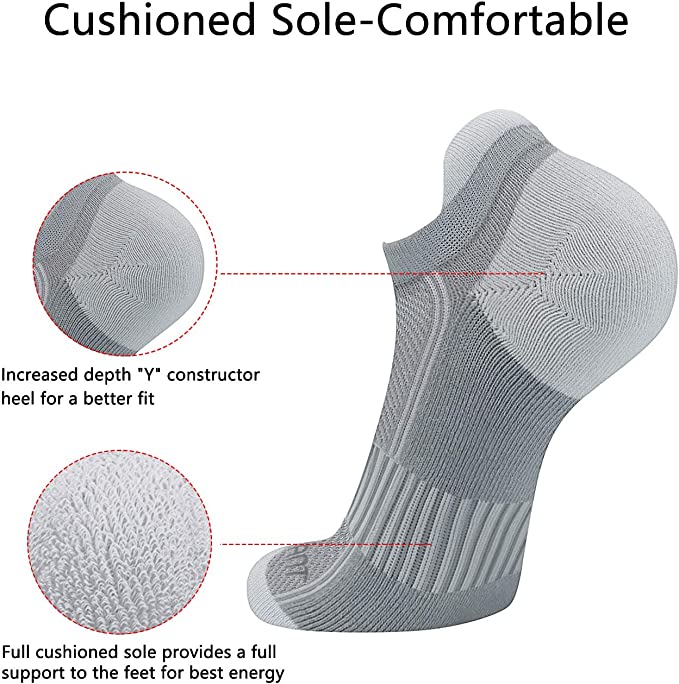 • Description: Quality women’s athletic socks These sport socks for women provide athletic Support-.The Power bands of this athletic Lycra in this socks gives a perfect elastic ability to hold your feet all around, and the elastic loop knitted in the middle feet can adapt an optimum tightness to follow your feet in any kind of motion, the sole is fully cushioned to provides a full support to the feet for best energy. They are convenient that means that  “Y” heel constructure gives an increased depth to heel pocket for a better fit that makes it easy to get in, but never sliding into your shoes during your movements. The highlighted middle-side lines make it easy to identify the horizontal boundary to wear it in right position without any later adjustments. These athletic socks are durable. The 200 needle-count fabric knitting all around, high-density cushion in full sole and double knitting in all the joint positions, all these details provide a superior reliability and durability to these athletic socks against any problem of tearing off or wearing out. Socks are Fresh, the special dynamic moisture wicking fibers in these cushioned socks can absorb sweat quickly, the breathable mesh constructure in the instep reduces the heat, it makes your feet fresh and cool all day. Finally, these athletic socks wash free. Our proprietary memory fabric in these socks make them super deformation resisting, make it always recover the perfect function and shape after wearing and washing, no matters by hand or machine.