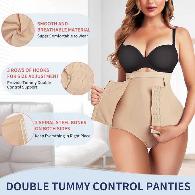 Description: This body shaping briefs are comfortable and soft.Our butt lifter panties are made of high-quality Nylon and Spandex material, 360° double-layered breathable fabric, super smooth and provide all-day comfort.This butt shaper for women has a silicone strip on top to keep it from rolling down when you bend down or sit,easy to take on and off.The high waist tummy shaper has lining crotch for extra protection.This stomach shaper with high-stretch fabric provides firm compression to smooth your curves right where you need it. Design to be a Butt shaping underwear. This butt lifter shapewear has unique heart shape buttock technology design to help tighten and lift up your hips in a natural way, hides any hips dips perfectly and provides a better shape, emphasised buttocks ,make your butt look bigger, and instantly brings you a sexy curve. High waist tummy control design with targeted to hide muffin top, take 3 inches off waist, give you the perfect look for confidence in your body appearance, creating a flawless look. The body shaping panties feature double compression tummy control. These high waist girdle panties combine single and double control layers design, high waisted double compression to provide more support for midsection area, offers firm control to smooth out all lumps, makes you look smooth and gives you great shape. The waist trainer underwear outer layer has 3 rows of hooks to provide adjustable support, you can adjust the size you want.Our stomach girdles for women flatten your stomach, reduce the appearance of love handles. This product offer maximum back support and stays in place. Our waist and butt shaper for women has 2 spiral steel bones on the sides to help keep it in place, hug your body, and without bunching and curling so you can keep your body shaper in place all day long. This tummy control shapewear provides lower back support, helps relief back pain and corrects posture. This double compression butt lifter can improve loose skin, postpartum recovery, also suitable for people who during postpartum recovery or after surgery. Most importantly, this body Shaper will not be noticeable under clothes. This women butt lifter underwear is invisible under wear dresses, skirts, leggings, and jeans, smooth out any imperfections, enhance curves perfectly and boost your confidence. The body shaper butt lifter gives an extra boost without being seen through clothes. Our tummy control high waist panties smooths out problem areas without discomfort, suitable for parties, weddings, date nights and Valentine’s Day, and you will receive many compliments.