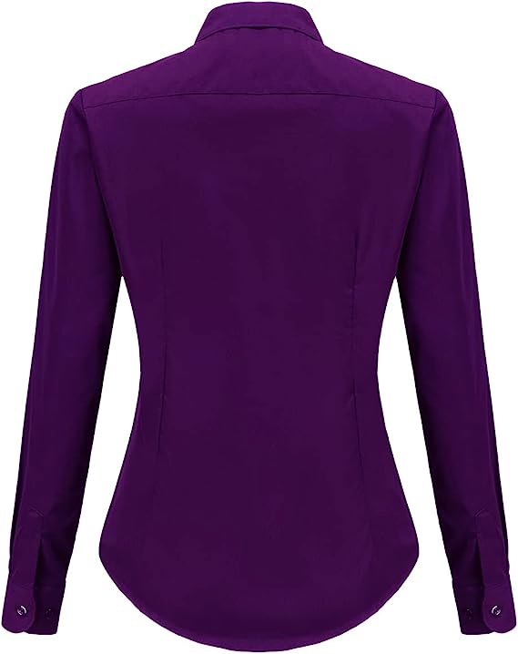 Professional Look: no-wrinkle shirts women provide classy spread collar, button-down collar, long sleeve with an adjustable button cuff, curved hem. You can unbutton a button or two to create a v-neckline that can improve the feminine charms and show your superb necklace.