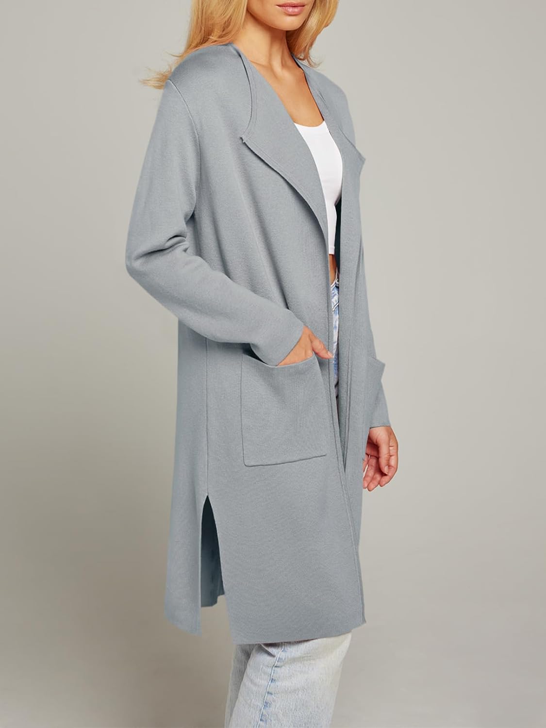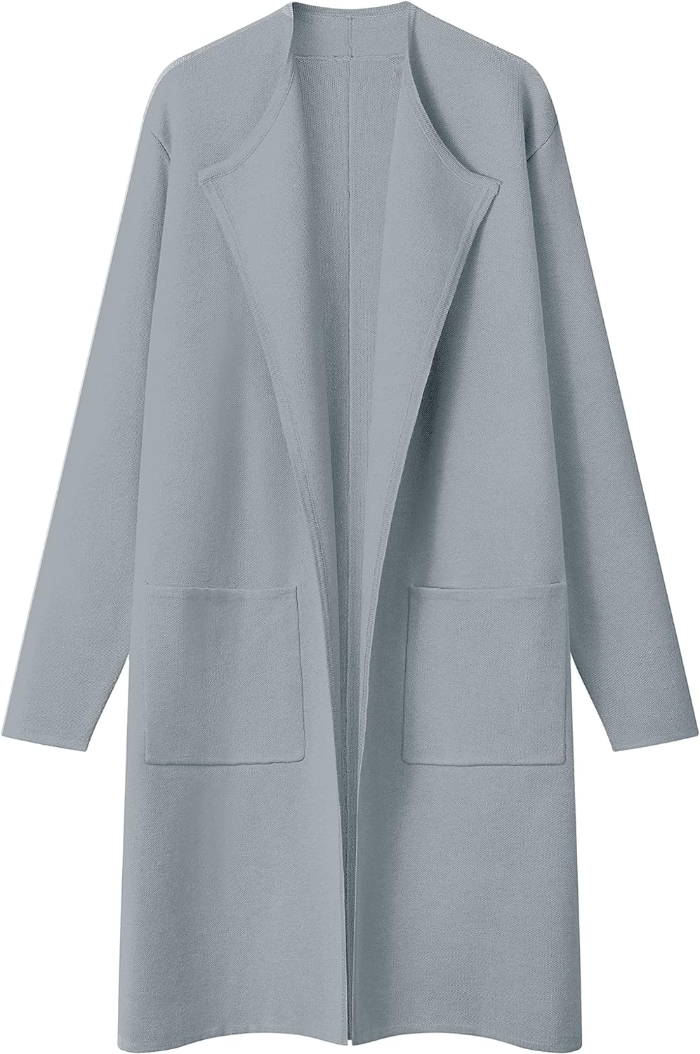 Women’s Long Sleeve Lapel Open Front Baby Gray Cardigan Coat Knit With Pocket
