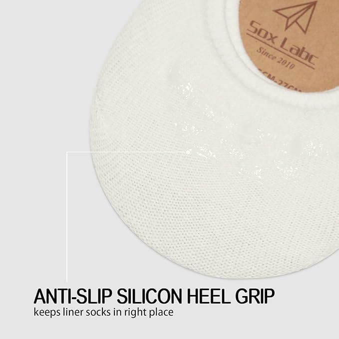 Description: these premium cotton made, no show, easy to clean socks are soft and super comfy, more breathable and possess moisture wicking properties. No slip silicon heel grip keeps liner socks in right place, Low Cut Design for Virtually Invisible Wear in Shoes.