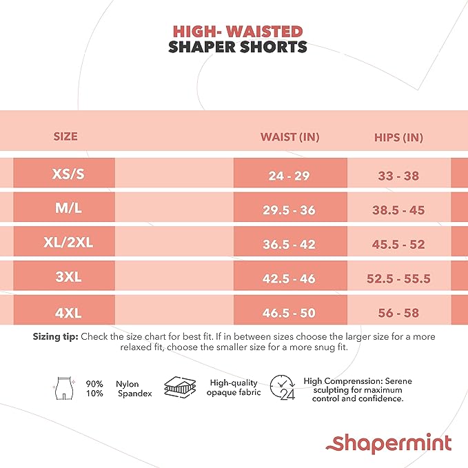 Sizing TIP: Check the size chart for best fit. If in between sizes choose the larger size for a more relaxed fit, choose the smaller size for a more snug fit. The Body Shaping Shorts was designed to give you maximum comfort and control: Our tummy control shapewear were made for comfortable everyday wear and to smooth out your tummy! It fits great under all types of clothing. This shorts stays in place: Our high waist shaper shorts stays in place for all-day secure fit! Whether you’re recovering from postpartum, wearing them under a dress or relaxing at home. Our shapewear for women tummy control is lightweight and breathable. Your Waist, Thigh & Back Coverage Instantly feel supported and slimmed. This body shaper for women’s tummy control shapewear is designed to effortlessly tuck your tummy, slim your thighs and smooth your back