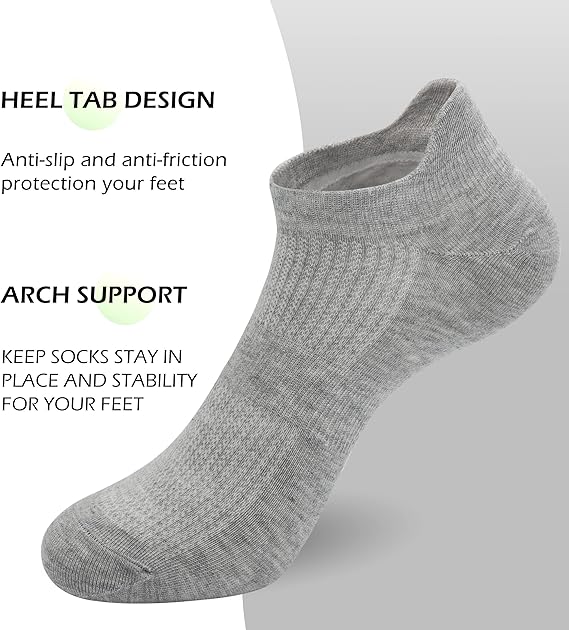 • Description: These socks are made out of Bamboo Fiber. Bamboo fiber is more durable than cotton, and comfortable and Odor resistant to keep your feet dry and cool. M size should fit no problem for shoes size 4 to 8. L size fit for 8 to 11. Socks Feature top mesh, arch support, and anti-slip heel. Thin and Soft, almost don’t feel wearing it.