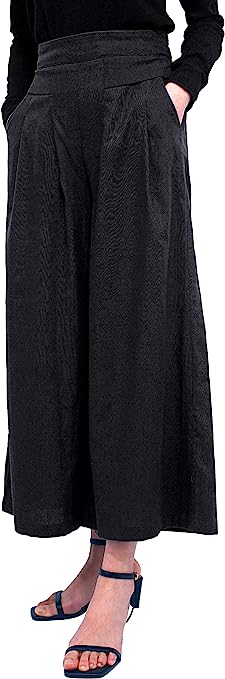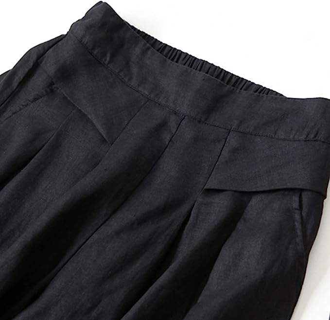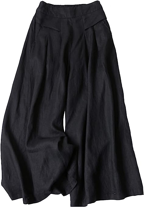 • Description: This product is women’s cotton linen pants made of about 80% cotton and 20% viscose. Elastic waist, loose fit, soft and breathable, well draped. Palazzo Pants Culottes, they are half elastic high waist, with twoi side pockets. Easy to put on and take off. Wide Leg Cropped pants: Loose and comfortable, makes you look more slim. And keep you cool in summer.